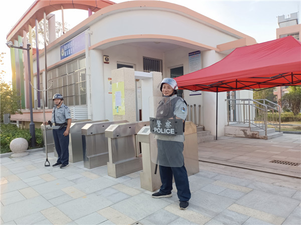 下午,海安市城东镇派出法制副校长韩兆林警官联合教管办负责人邱奉来、交警中队民警,结合当前校园安全面临的主要威胁对保安人员提出了一定要会盘查、会判断、会报警、会使用、会处置的“五会”要求,确保校园保安人员在遇到突发情况能临危不乱,切实保护好师生的生命安全。