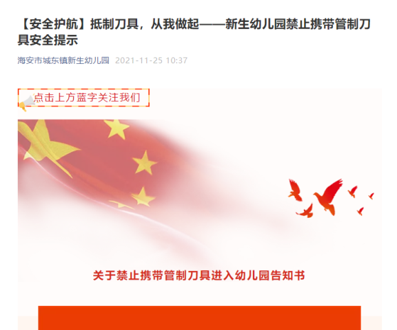 加强隐患排查 筑牢安全防线——海安新生幼儿园开展禁止管制刀具进校园排查