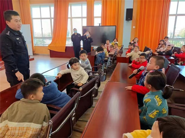 交警叔叔运用生动形象的教学形式对幼儿进行交通安全教育。运用简单的交通手势,指挥交通,通过游戏活动使幼儿对交通规则有一个初浅的印象,增强幼儿的交通安全意识,了解交通法律知识,知道违反交通规则也是一种违法行为。老师们则在班级里创设良好的教育环境,潜移默化地影响幼儿,如设立交通安全角,张贴有关交通安全标志的图片等,提高幼儿对交通标识的识别。