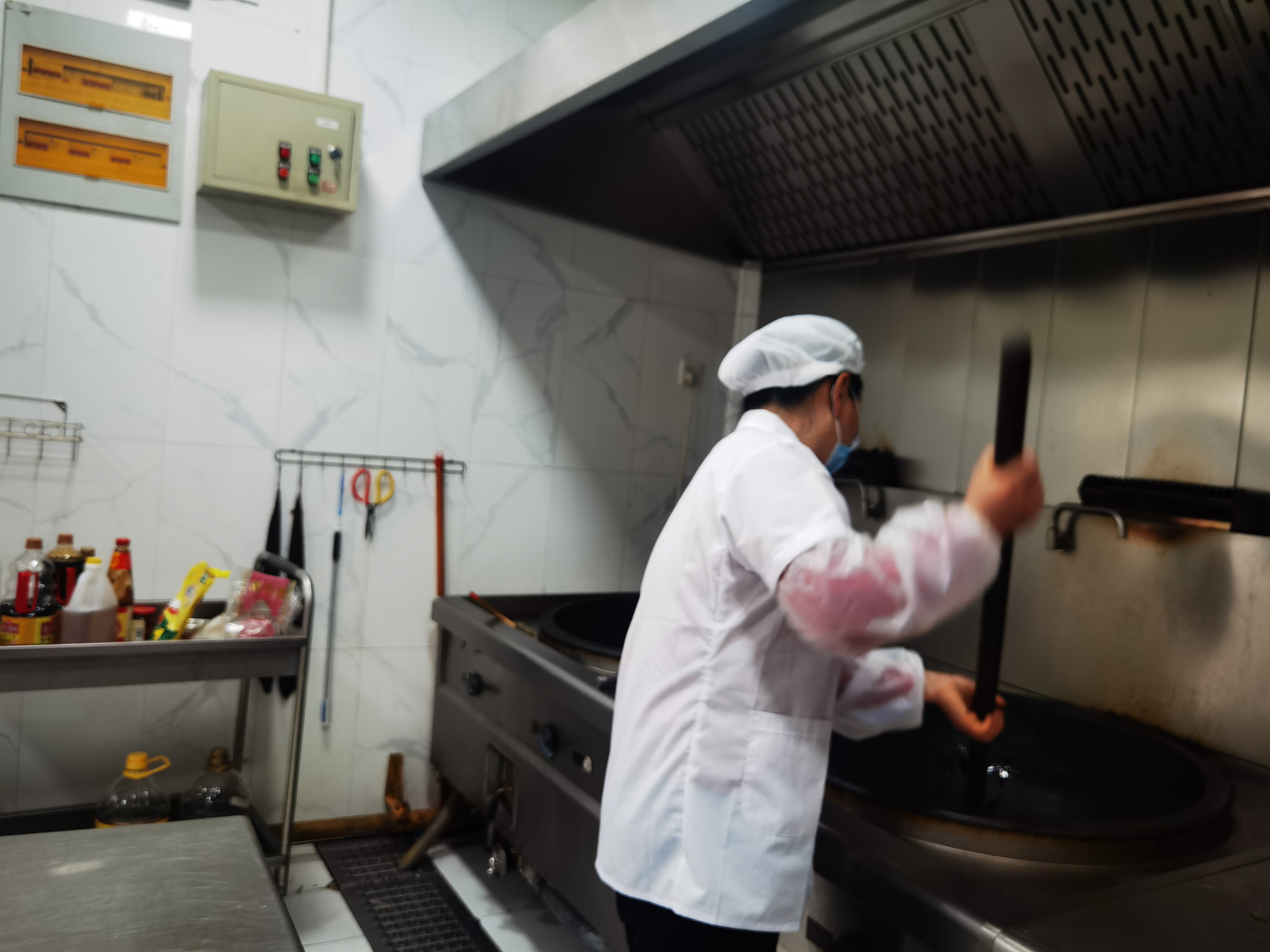 食堂主任刘梅进行应急演练方案培训:1.发现燃气泄漏后应立即打开门窗,使空气流通,关闭总阀,停止使用燃气,并通知学校领导。2.发现燃气泄漏时,严禁火种进去,严禁开、关电灯,拉、合电闸、严禁敲击金属器具,以免将事故进一步扩大否则将引起爆炸和燃烧。3.当发现燃气管道有泄漏,若裂缝较小时及时采取临时措施用胶布或用香皂、肥皂将漏气处封堵,并及时关闭输气阀门,立即开窗通风。4.食堂、锅炉若发生燃气失火时,发现人员应先关燃气开关,立即用湿布进行扑打,并迅速通知上级领导。如火势较大无法控制时,应迅速通知消防部门,报警时应报清事故单位、地点、何种火源、人员伤亡、报警人姓名、联系电话等情况。在通知上级领导时,应讲清楚燃气泄漏的原因、范围、已采取的措施等。