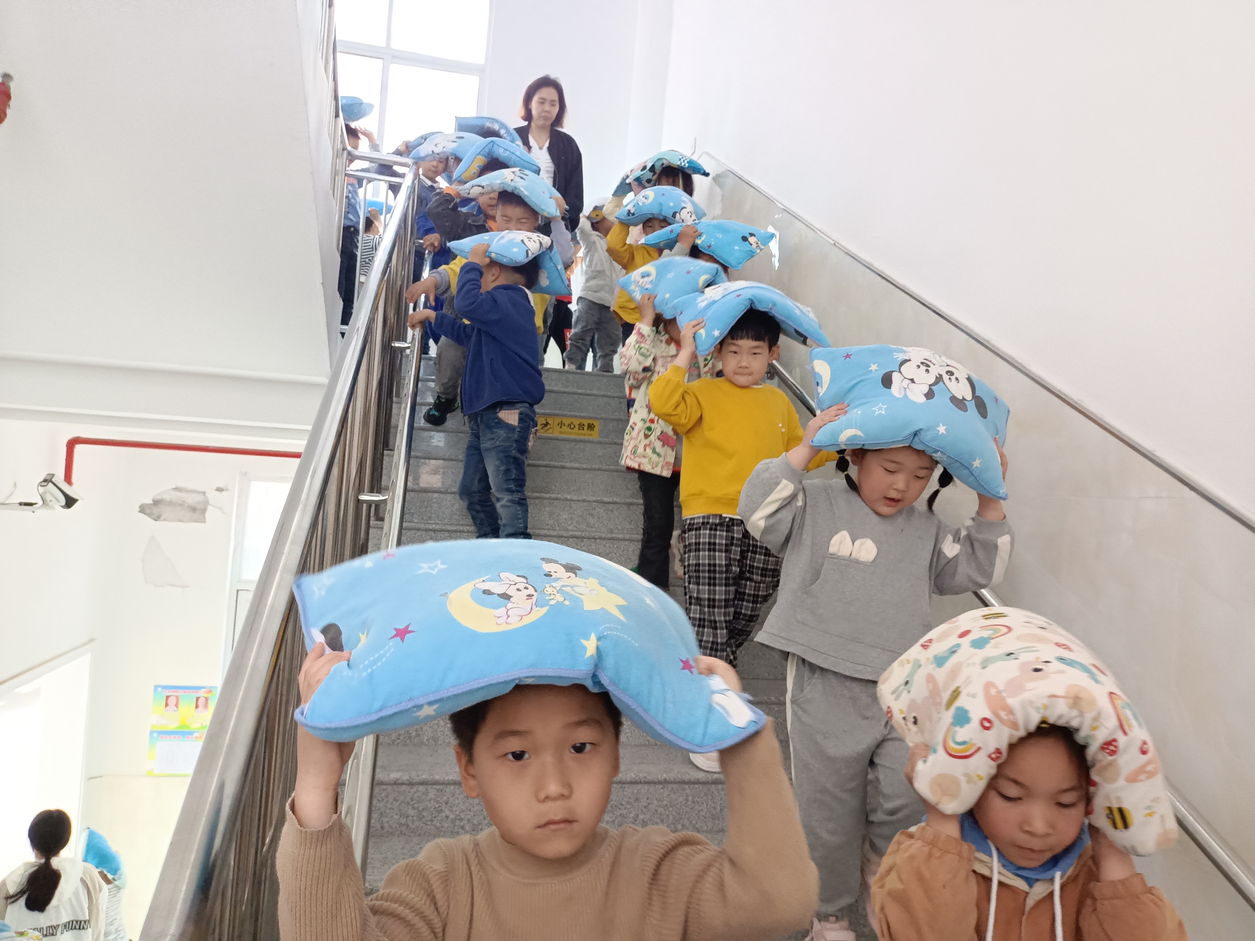 随着警报声鸣响,防震疏散演练正式开始。当广播反复播放“现在地震来袭,实施紧急避险”时,各班老师立即指导幼儿迅速抱头、闭眼,躲在墙角处或桌底,尽量蜷曲身体,降低身体重心,并尽可能保护头部;随后紧急避险结束,疏散警报响声,各年级组按照部署错峰组织幼儿迅速有序地分别从安全通道紧急疏散到室外安全空旷的操场。