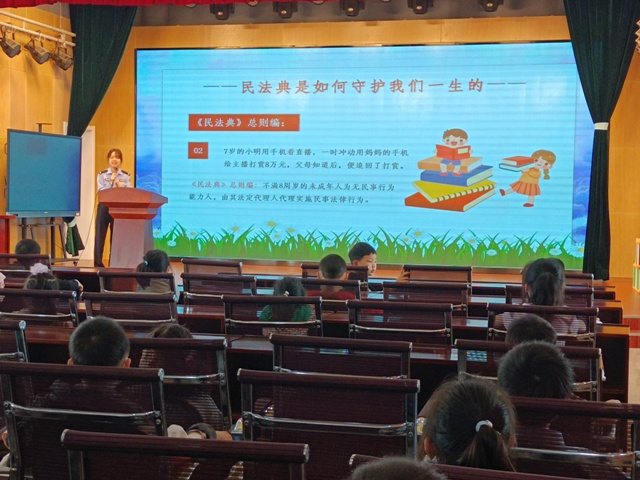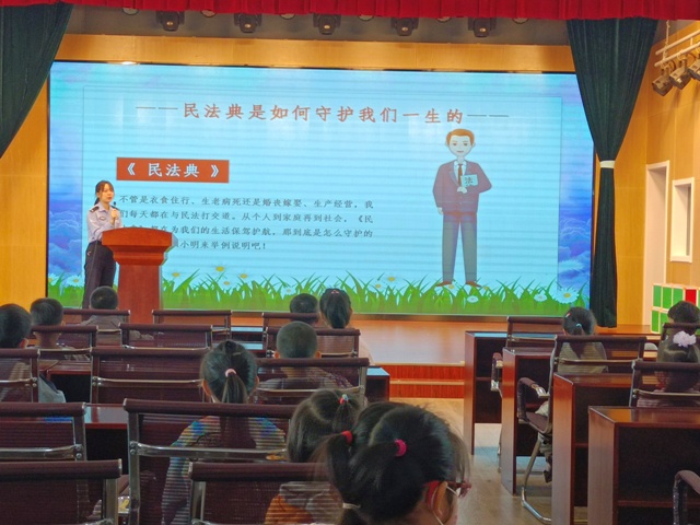 《中华人民共和国民法典》是新中国成立以来第一部以“法典”命名的法律,是“社会生活的百科全书”,与每个人的生活息息都相关。为了帮助幼儿初步建立家庭关系的法律认识,5月24日,新生幼儿园特别邀请城东镇派出所警官樊子婧到园,为幼儿开展生活学法、生活用法知识宣讲。