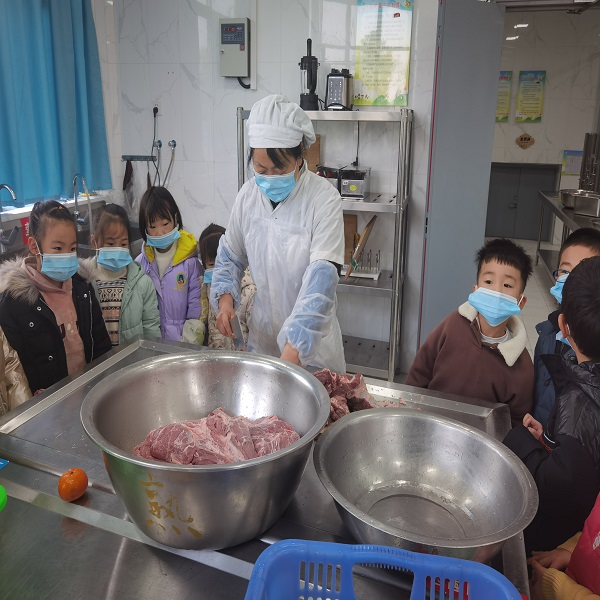 为进一步加强幼儿园食堂安全卫生管理,引导幼儿养成良好的用餐习惯,懂得“谁知盘中餐,粒粒皆辛苦”。2021年12月10日上午,新生幼儿园开展了幼儿参观食堂活动。