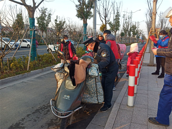 寒冷的天气里,为了让孩子上放学不挨冻,不吹冷风,用私家车、带棚三轮车接送幼儿成了家长的主要选择。虽采取了错峰上放学,但每逢上放学高峰期,幼儿园门口车流人流汇集在一起,还是易造成安全隐患。为提高家长的交通安全意识,培养大家遵守交通规则,养成良好的文明出行习惯,1月11日新生幼儿园开展了主题“低碳出行,安全接送”的志愿服务活动和接送车辆隐患排查活动。
