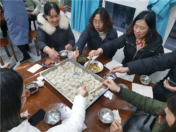 活动中大家激情高涨,“厨神们”各显神通,纷纷拿出看家本领。老师们以特色菜为题,热火朝天的烹制各式菜肴,真可谓是“八仙过海各显神通”,“煎、炒、炸、烩”样样拿手,每一道工序都娴熟老道,有的注重“包装”,有的注重火候、有的注重味道:“红红火火”“年年有余”“龙凤呈祥”“团团圆圆”……一个个菜式都力求“色、香、味、形”俱全。在欢乐、温馨的气氛中,大家互帮互教,各显身手,每个人脸上洋溢着兴奋,他们纷纷拿出手机拍照留念,现场萦绕着欢声笑语。
