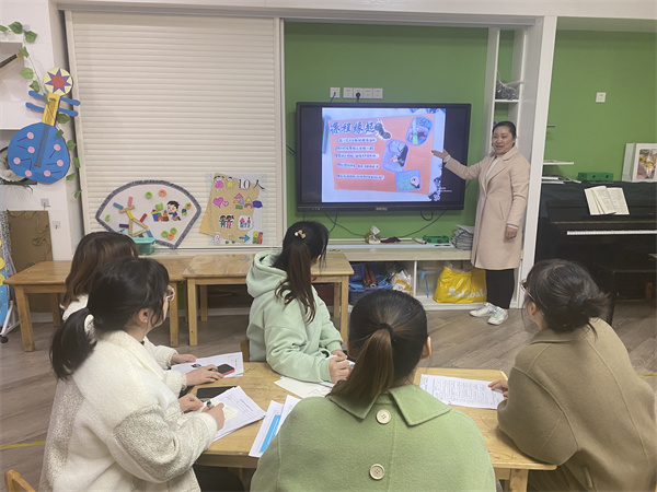 首先,园长丁海燕组织全体教师聚焦班本基于一个主题,老师们一起发出疑问、一起研讨。对各班班本课程的实施提出来具体要求,在课程实施的过程中教师的课程理念需要不断更新,教育行为需要不断转变,追随儿童的课程需要在探索中自然生发,儿童逐渐成为课程的主人。