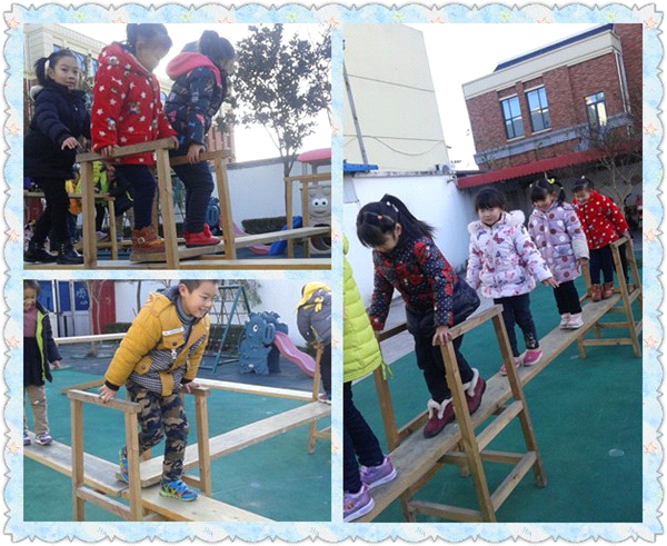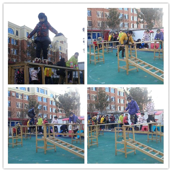 活动最后,老师还带领孩子们去户外玩梯子,梯子是可以一层一层叠高的,有的小朋友害怕,不敢爬,但经过老师的鼓励,孩子们都在勇敢的前进着。这个体育游戏不仅锻炼幼儿的身体,又培养幼儿遇到困难不退缩,告知孩子们要做一个不怕寒冷勇敢的好孩子。