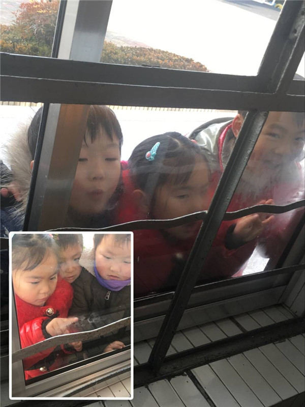 冬天有很多秘密,孩子们喜欢探究秘密,有些幼儿在教室的玻璃上用自己的小嘴巴吹一口气,这时候雾水就出来了,孩子们还在上面作画了,太神奇了!