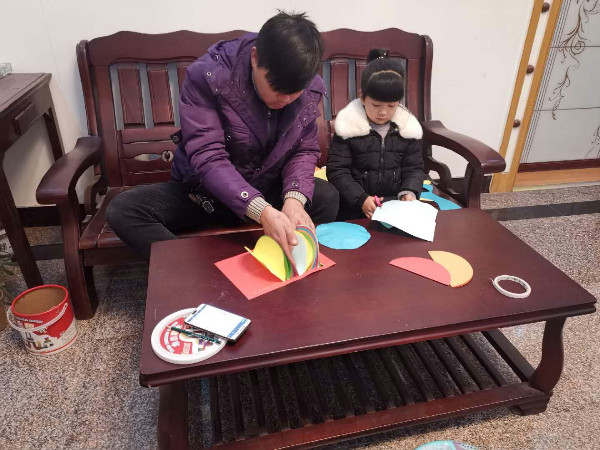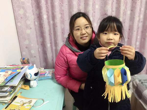 回到家中,宝贝们和爸爸妈妈一起动手,通过折、画、粘贴等方式制作福灯笼,营造节日的喜气氛围。