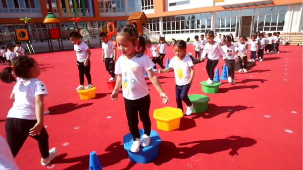宝贝们快乐的一天也从运动中开始了,孩子们时而钻、时而跳、时而踩高跷,玩得不亦乐乎,教师们对活动进行科学合理的组织与调控,使孩子们得到了积极有效的锻炼。