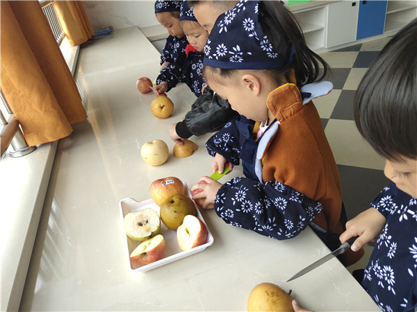 为了培养幼儿的生活技能,体验生活的乐趣,城东镇新生幼儿园为孩子们打造充满童趣的生活体验馆,10月29日下午,中2班的孩子们就在这里体验了水果拼盘和榨果汁的活动。