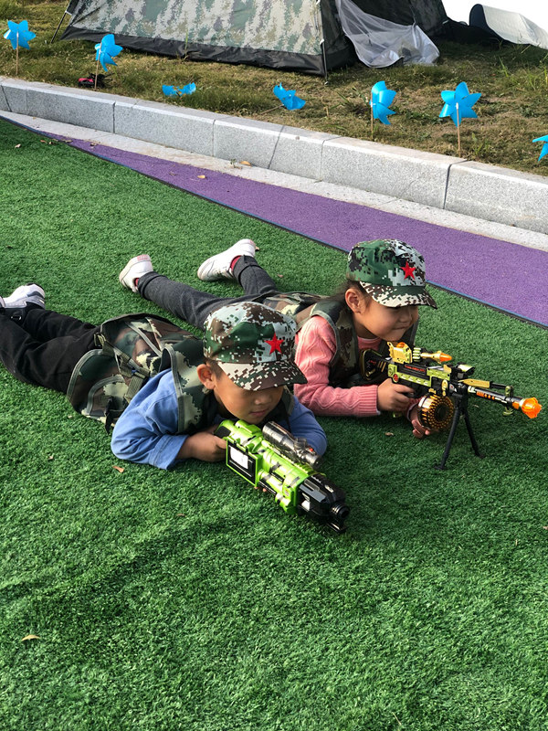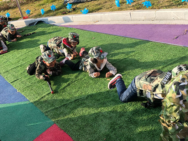 本次游戏活动充分挖掘孩子们的兴趣特点,让他们勇于探索,积极参与,不怕困难。同时野战训练游戏让孩子感受到了解放军叔叔的英勇无畏,也培养了幼儿良好的合作精神,激发了对体育游戏的兴趣。