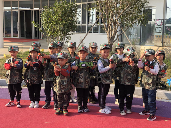 成为一名光荣的解放军,身穿英姿飒爽的军装,踏着整齐的正步,喊着响亮的口号,这是很多孩子心中的梦想。为了使孩子们能够体验当军人的感受,新生幼儿园的老师和孩子们一起在幼儿园里打造了一个野战丛林区,11月7日下午,孩子们在小小的“野战营”里快乐、疯狂地过了一把小兵瘾。