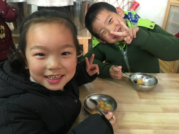 下午点心时间,孩子们品尝着自己做的彩色汤圆,漂亮的颜色、甜甜糯糯的汤圆,孩子们可开心了!