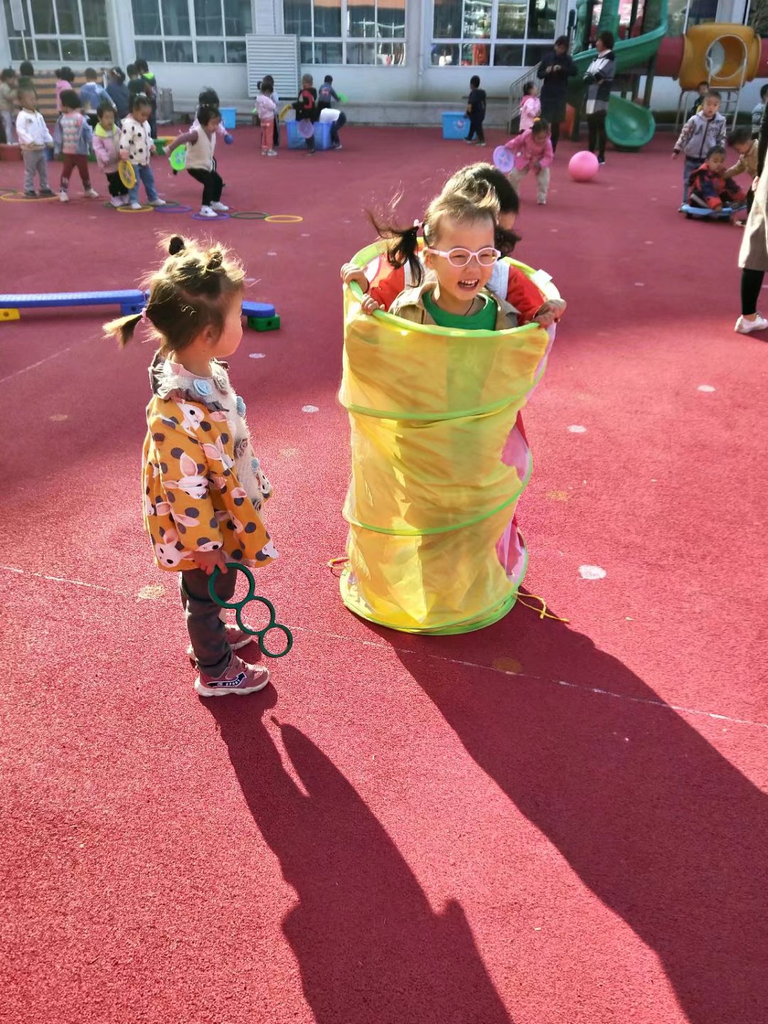 晨间锻炼是幼儿园一日活动必不可少的环节,也是孩子们锻炼的一种重要方式。为了深入贯彻《3-6岁儿童学习与发展指南》精神,引导幼儿主动参与体育运动,有效增强身体抵抗力。操场上,孩子们时而钻、时而跳、时而拼搭,玩得不亦乐乎,教师们对活动进行科学合理的组织与调控,使孩子们得到了积极有效的锻炼。这种开放式的锻炼,让孩子们不再局限在规定的一方小天地,他们可以玩到更多的器具,真正做晨间锻炼的主人。