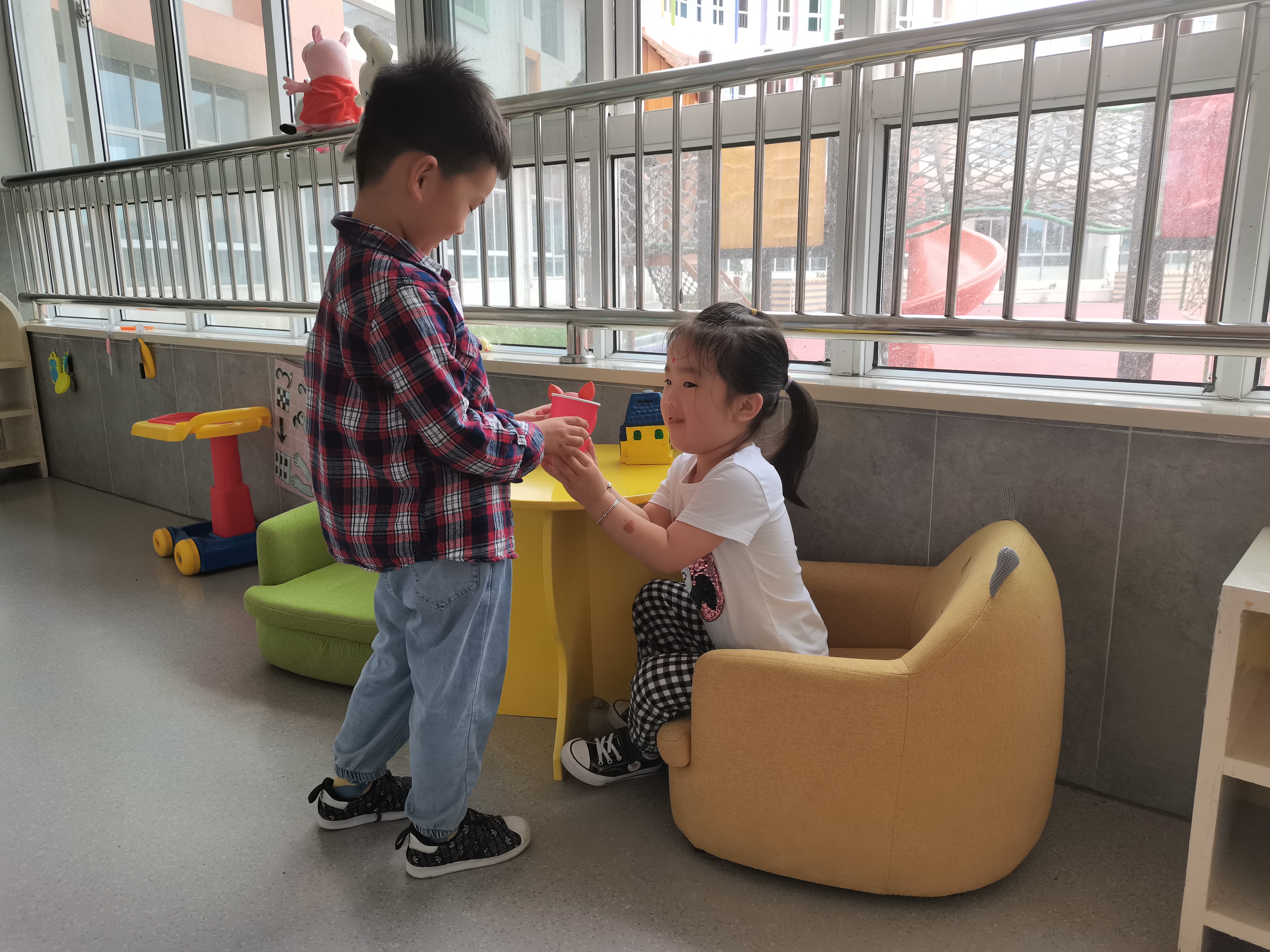 幼儿园还将礼仪教育的内容贯穿于幼儿一日生活之中。在教学活动中,孩子们学习礼仪律动操、表演礼仪情景剧等;在区域游戏中通过让孩子扮家家渗透打电话、做客、分享玩具等等的礼仪。通过日常渗透的方式,孩子们对礼仪教育的内容有了现实的体验,所以很自然的就把学到的文明行为运用到日常的生活之中。