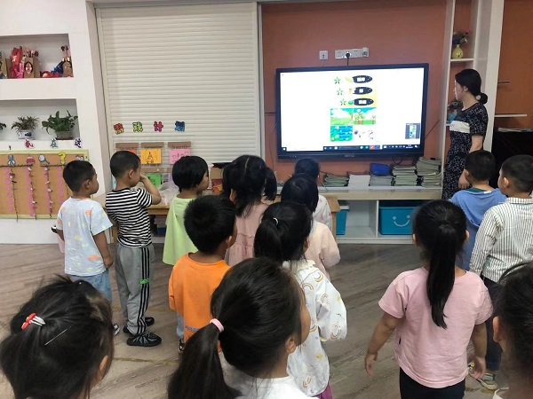 接着老师让孩子们想一想“夏天有什么”。带着这个问题,老师带孩子们学习了一首诗歌《夏天的歌》,让孩子们在儿歌里学习夏天的景象。孩子们非常认真地听着,读着,记着,在随后竞猜小游戏中,很多小朋友还能仿编诗歌,得到了小奖励!