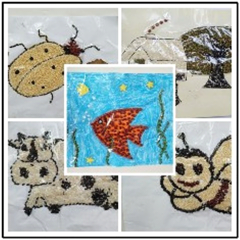活动前,家长积极配合,一起收集各种各样的种子,有黄豆、花生、绿豆、瓜子、玉米粒、大米、小米、红豆、黑豆、稻谷、芝麻等,活动中,在家长的指导帮助下,一粒粒种子在家长和幼儿的手里变成了一幅幅美丽的图画:有的幼儿选择用豆子粘贴小丑脸,有的幼儿选择用大米粘贴小猫、小鱼,有的幼儿选择用瓜子粘贴向日葵等……孩子们充分发挥想象力和创造力,粘贴出了一幅幅美丽的作品:快乐的熊猫兄弟、勤劳的蜜蜂、美丽的葵花、可爱的七星瓢虫、奔腾的马儿、翩翩起舞的蝴蝶……充分展现了幼儿活泼的艺术天性。家长们也纷纷表示这是一次难得的经历。