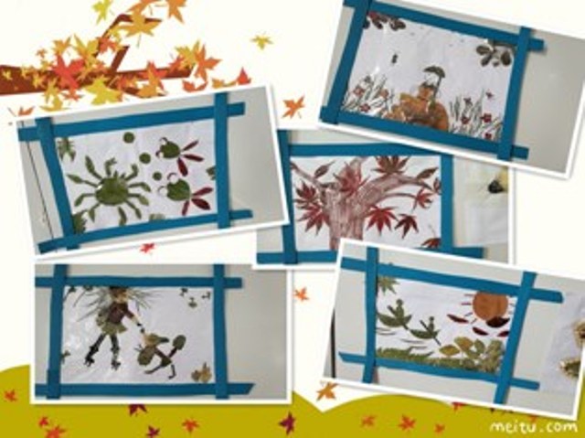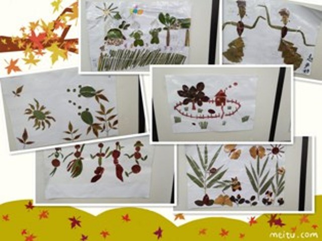 本次活动特别邀请了家长、老师和小朋友一起参加,将秋游收集到的各种形状、大小、颜色不同的树叶,大胆地拼贴出一幅幅形象生动的艺术作品。