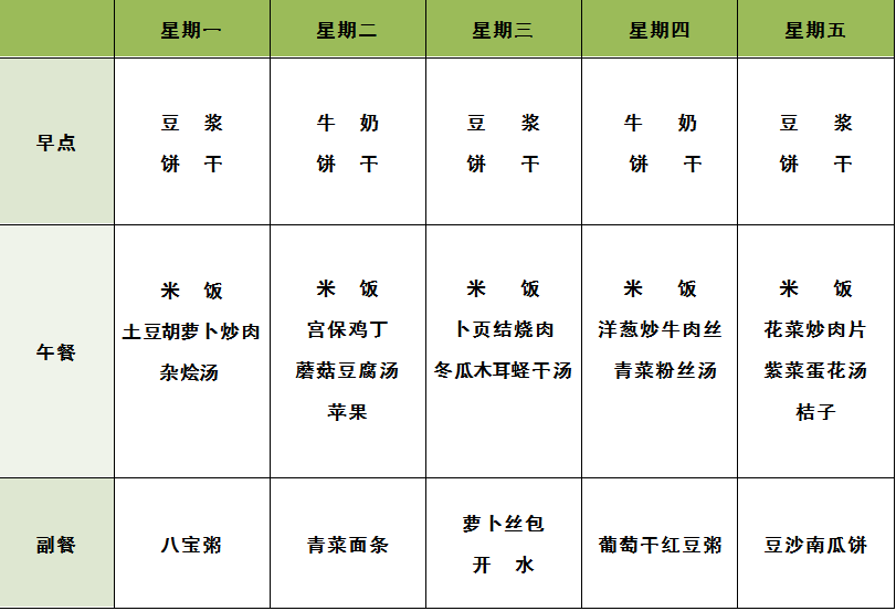 新生幼儿园2018-2019学年第一学期第七周食谱