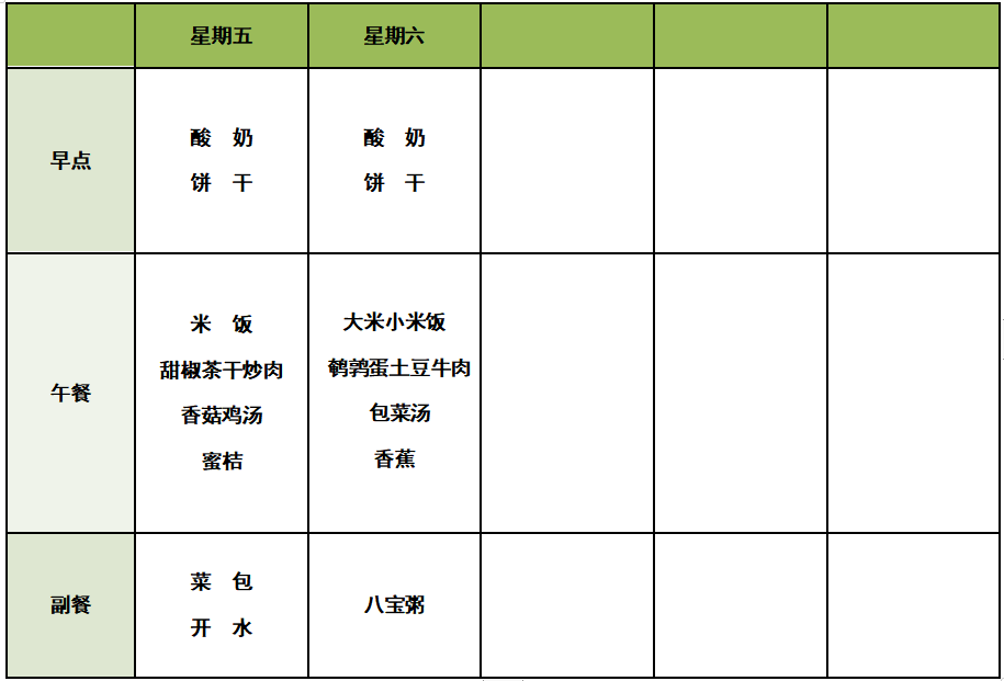 2020年下半年第六周食谱