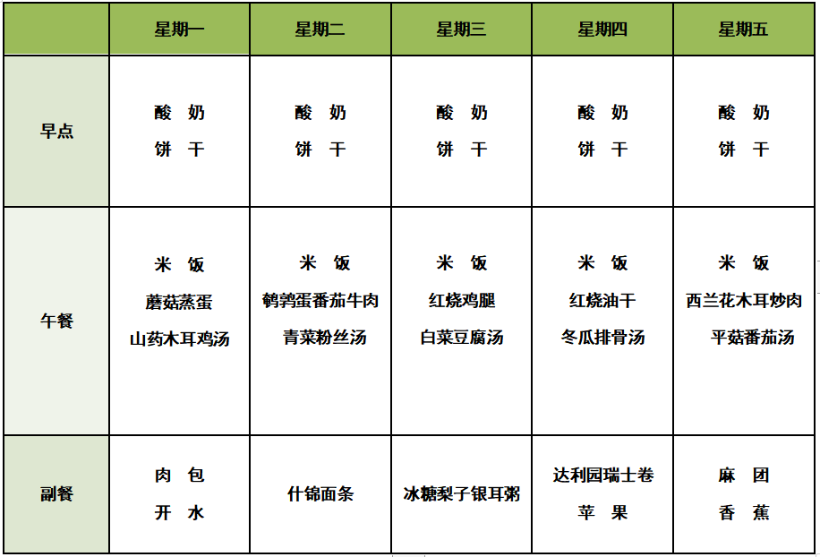 2021年上半年第六周食谱