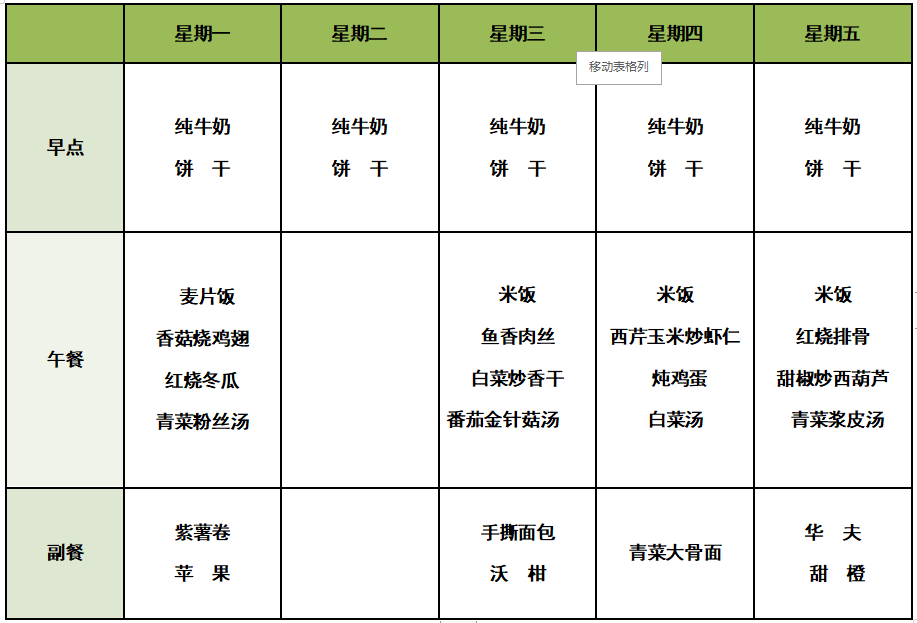 每周食谱
