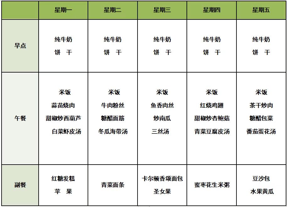 每周食谱
