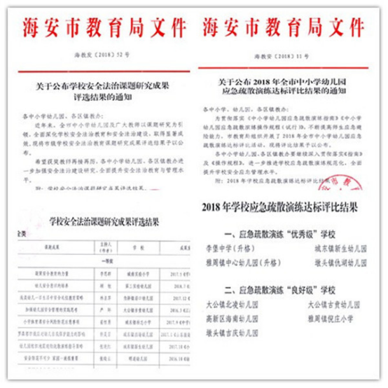 新生幼儿园的防震避险疏散演练,将宣传教育与实操活动有机结合起来,实现“教育一个幼儿,影响一个家庭,带动整个社会”,全园师生面对灾难,能迅速作出规范的避险疏散行为。在全市中小学防震演练评比中获得优秀级!同时,本园以课题研究为引领,全面深化学校安全法制教育和建设。安全法治课题《幼儿园组织地震避险疏散演练指导策略》喜获一等奖,《以生命的名义点燃保护生命的激情》荣获二等奖!这也是该园多年来安全教育结出的丰硕成果。